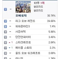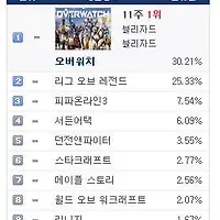 1.오버워치 30.21% ▶ 30.56% (↑0.35%)