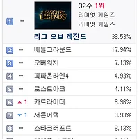 1.리그오브레전드 33.53% ▶ 32.76% (↓0.77%)