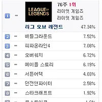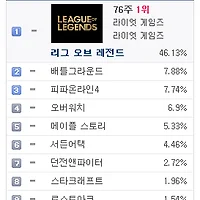 1.리그오브레전드 46.13% ▶ 46.41% (↑0.28%)