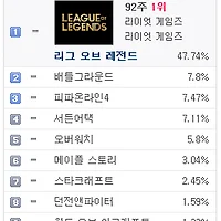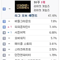 1.리그오브레전드 47.18% ▶ 47.62% (↑0.44%)