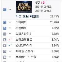 1.리그오브레전드 28.5% ▶ 28.62% (↑0.12%)