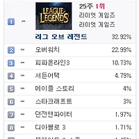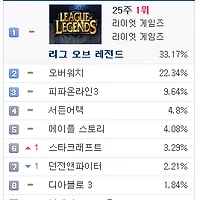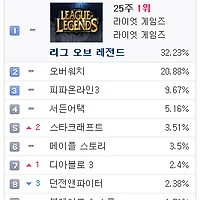 1.리그오브레전드 32.08% ▶ 32.4% (↑0.32%)