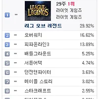 1.리그오브레전드 29.92% ▶ 30.86% (↑0.94%)