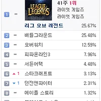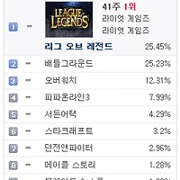 1.리그오브레전드 25.45% ▶ 24.96% (↓0.49%)