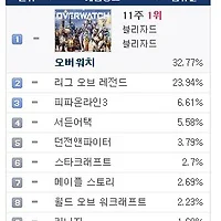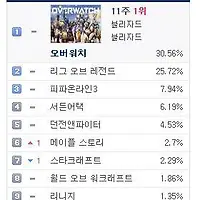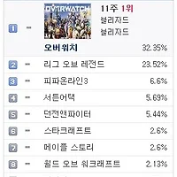 1위 오버워치 32.35% ▶ 32.7 (↑0.35%)