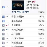 1.리그오브레전드 30.17% ▶ 30.7% (↑0.53%)